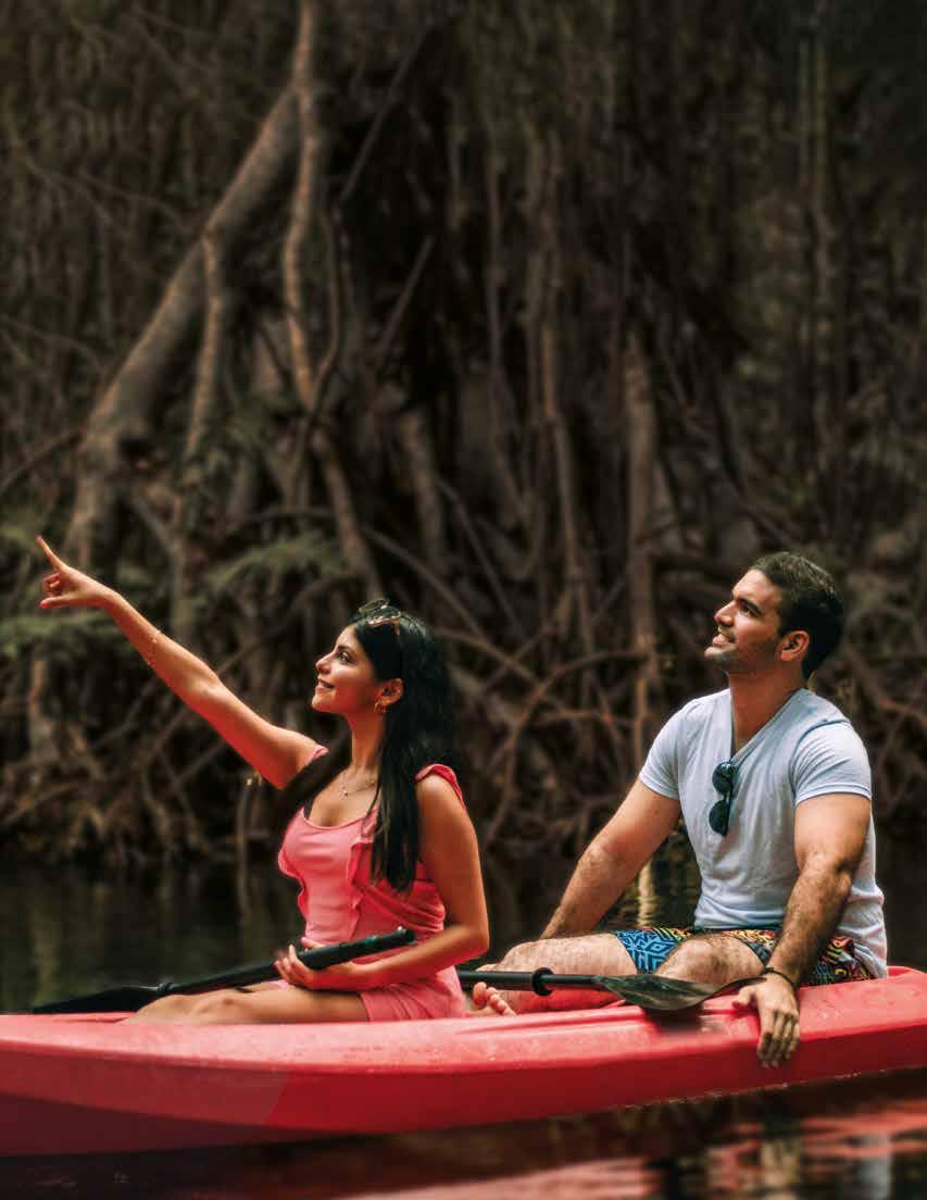 Recorre en kayak los manglares cercanos que se han formado en donde el agua dulce se une con la salada.