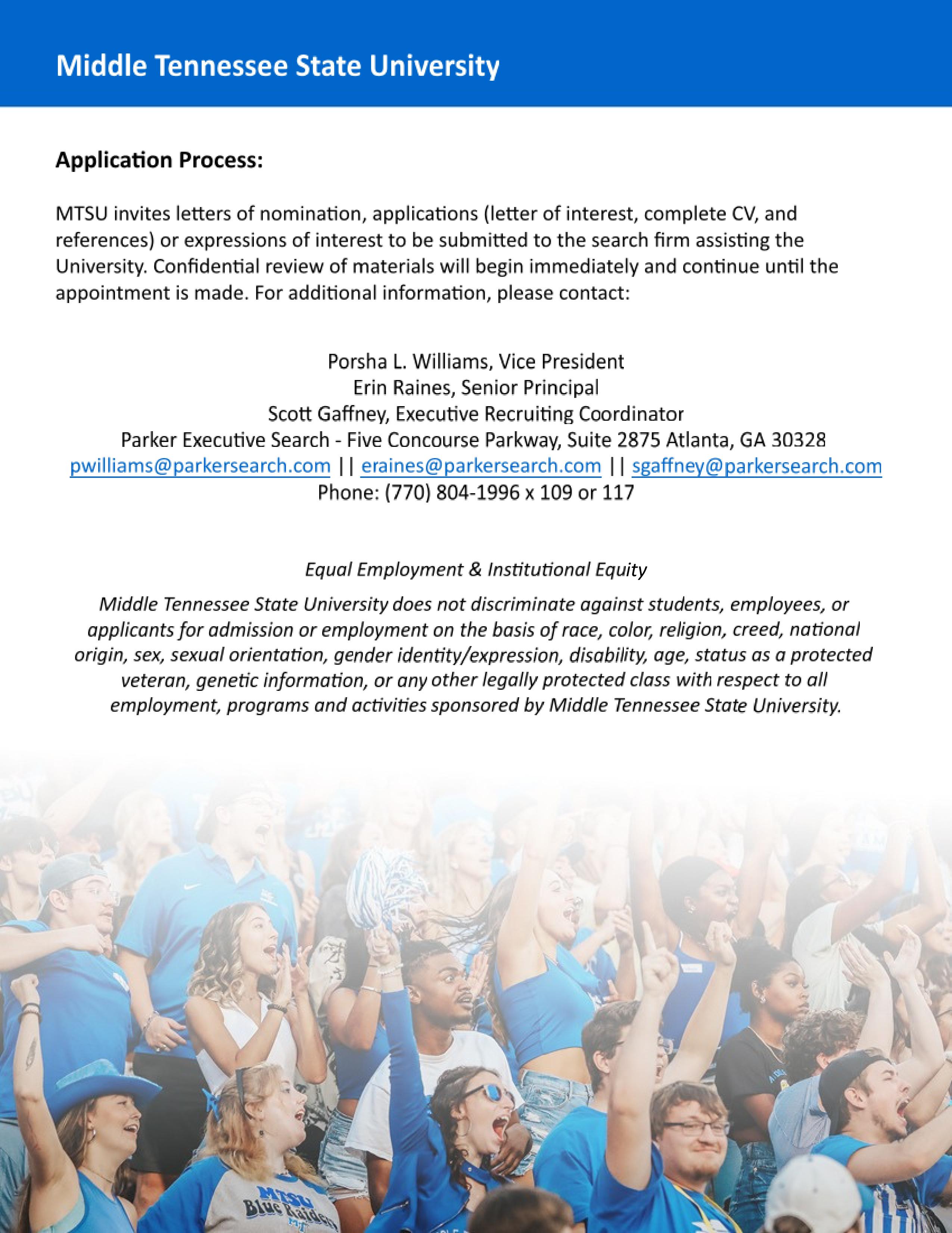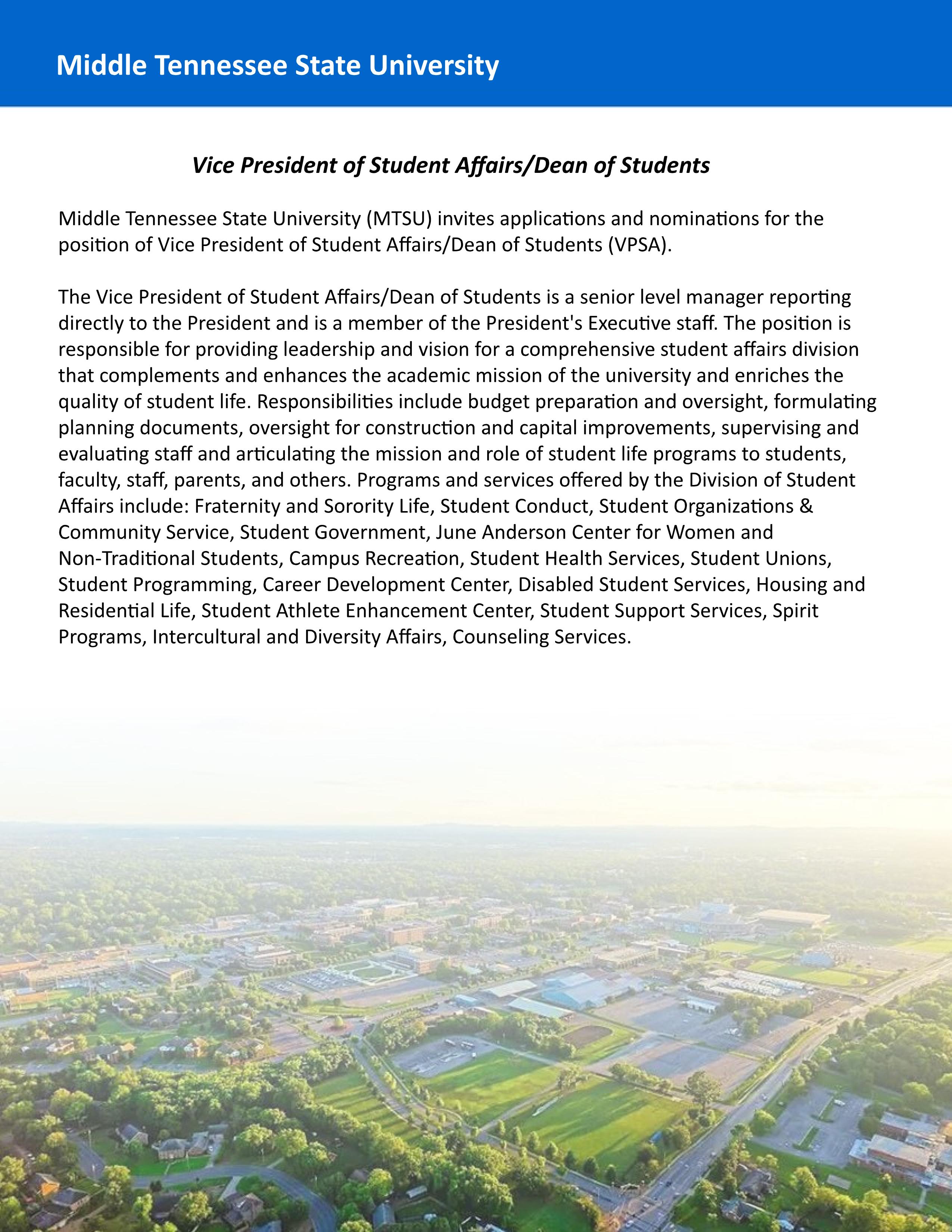 Middle Tennessee State University - Vice President of Student Affairs/Dean of Students