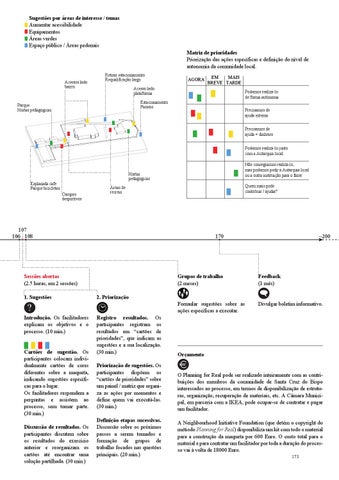Orçamento O Planning for Real pode ser realizado inteiramente com as contribuições dos membros da comunidade de Santa Cruz do Bispo interessados ao processo, em termos de disponibilização de estruturas, organização, recuperação de materiais, etc. A Câmara Municipal, em parceria com a IKEA, pode ocupar-se de contratar e pagar um facilitador. A Neighbourhood Initiative Foundation (que detém o copyright do métiodo Planning for Real) disponibiliza um kit com todo o material para a construção da maqueta por 600 Euro. O custo total para o material e para contratar um facilitador por toda a duração do processo vai à volta de 18000 Euro. 173