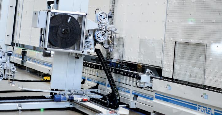 The relationship and collaboration with Forel increase over the following years, thanks to the introduction of other automatic machinery such as the profile bender, desiccant filler, edging machine and sealing robot that, when combined with the washing machine and coupling press, converted the insulating glass production line to fully automatic.
