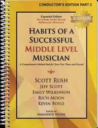 • Our innovative Habits band series grows with a new book for intermediate musicians, picking up where the green beginner book leaves off, brought to you by the dream team of Scott Rush, Jeff Scott, Kevin Boyle, and Marguerite Wilder (pages 10–11).