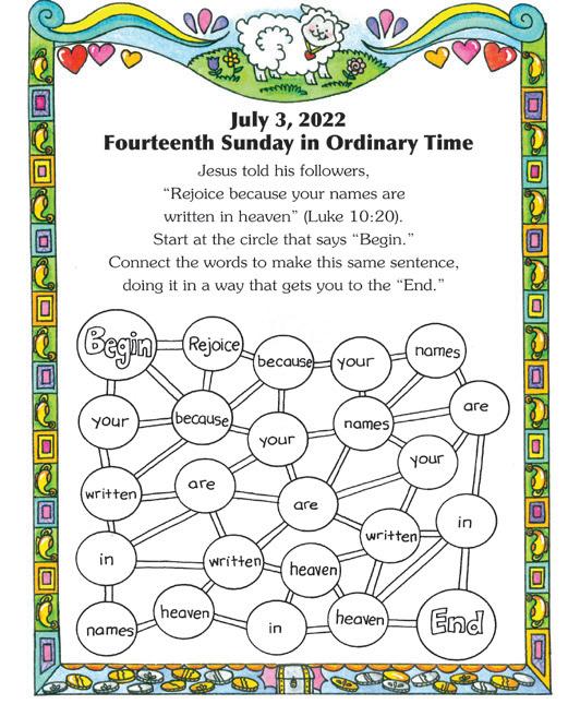 • Every Sunday includes a craft, activity or introduction to a Catholic song, custom, prayer or tradition; two Lectionary-based Scripture activities, and a coloring page.