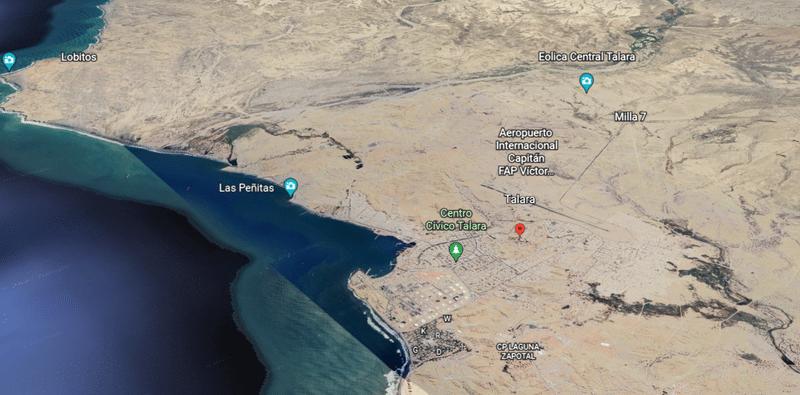 Está ubicado al sur de Talara, a 10 minutos en auto. El paisaje es elocuente, la vía se encuentra en buen estado, facilitando la movilidad en todo horario, incluso en la madrugada.