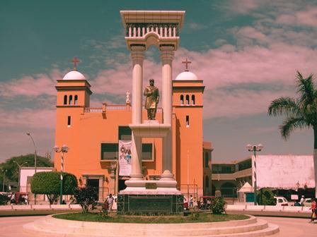Visitamos el centro de la ciudad y llegamos a la plaza de Armas, ahí podemos observar dicho monumento que rinde homenaje al héroe nacional de origen piurano Miguel Grau Seminario.