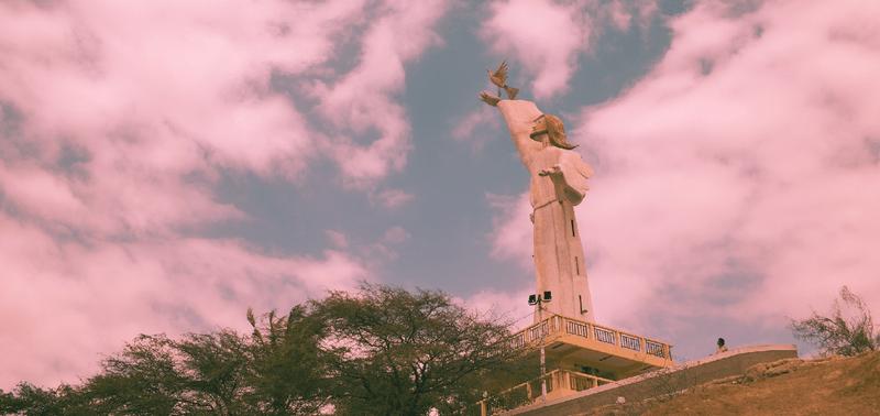 Inicialmente también se pensó en construir la efigie de la Virgen de la Inmaculada, patrona de Talara, sin embargo, al final, se optó por una imagen que tuviera los brazos abiertos, “para detener la furia del mar”, según dice el artesano y escritor Mario Quevedo, quien fue nuestro guía en el siguiente video.