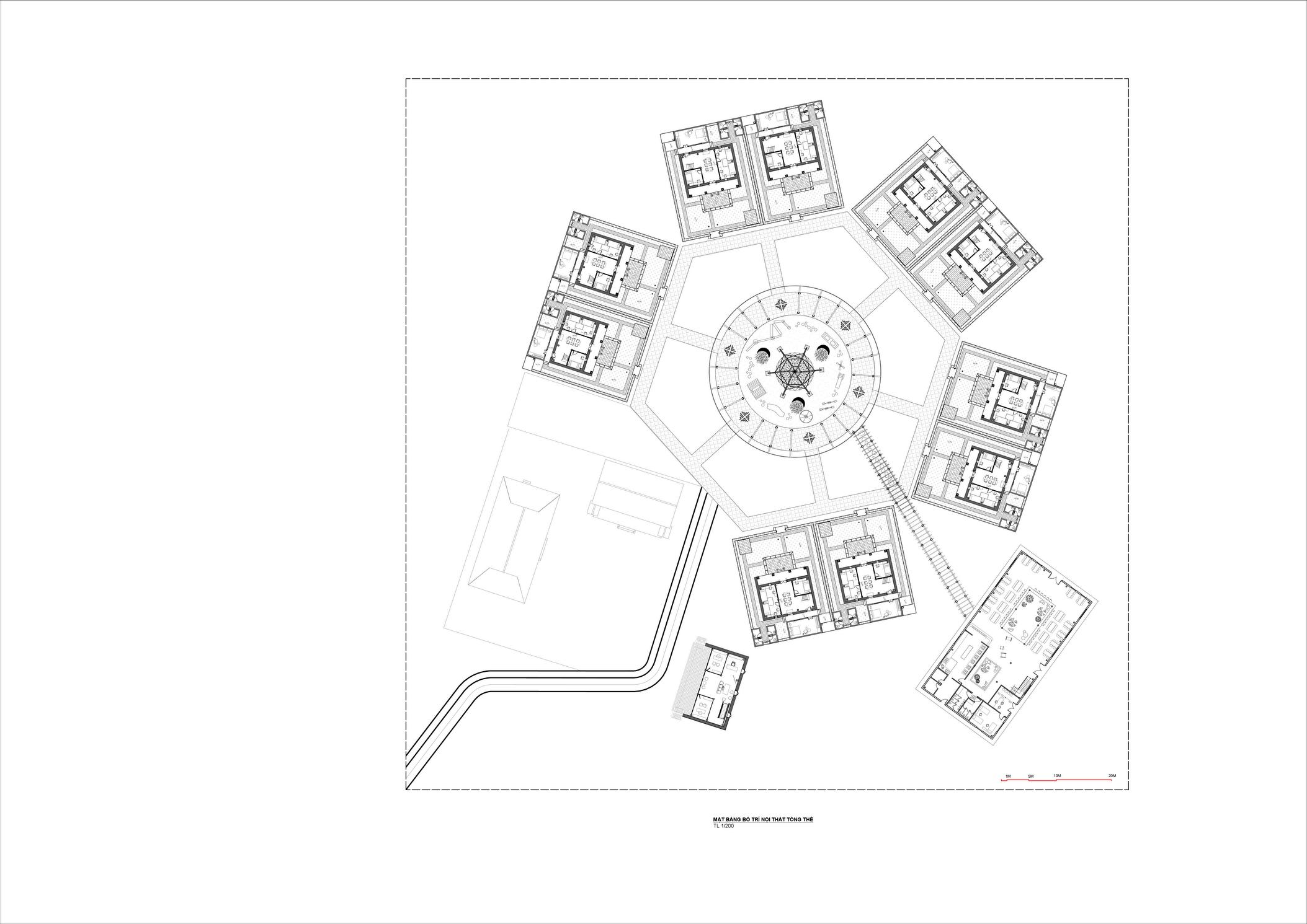 Khối lưu trú: Chăm sóc, nuôi dưỡng, tạo mái ấm gia đình Khối cộng đồng: Dinh dưỡng, hỗ trợ nghề y tế Khối vui chơi: Phát triển kỹ năng xã hội, thể chất Chức năng công trình: Dựa theo mô hình của làng trẻ em SOS là mô hình gia đình thay thế: Một nhà sẽ có mẹ và 6 - 10 trẻ ở độ tuổi khác nhau Mẹ là những người không ràng buộc gia đình, chăm sóc và trực tiếp dạy dỗ các em Mô hình hoạt động