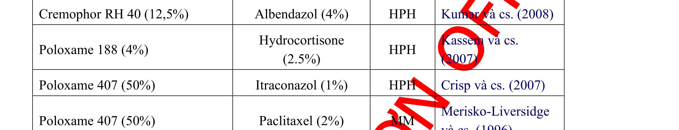 1.4. Thành phần, cấu trúc và đặc điểm hòa tan dược chất từ tiểu phân nano 6