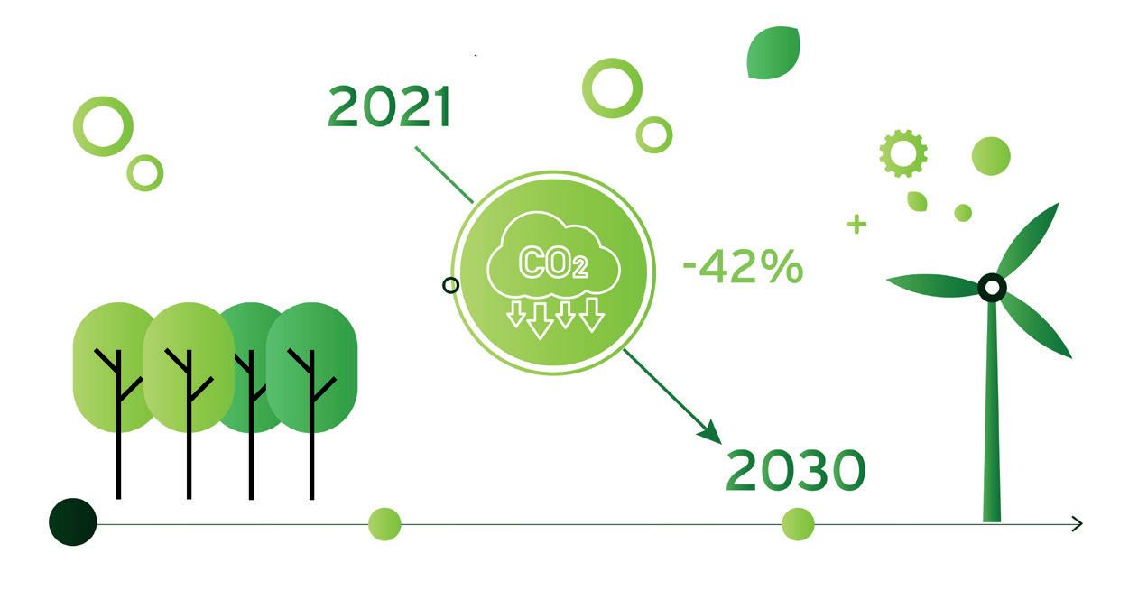 42% reductie van Scope 1 en 2 emissies, ten opzichte van 2021