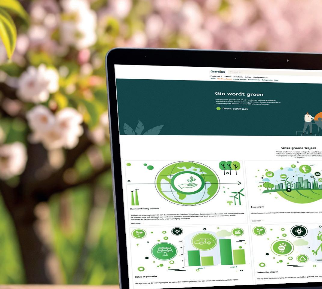 In 2025 heeft Giardino haar CO2-uitstoot in Scope 1 en 2 met 81% gereduceerd t.o.v. 2021, dankzij elektrificatie van het wagenpark en volledige overstap op groene stroom.