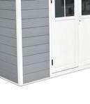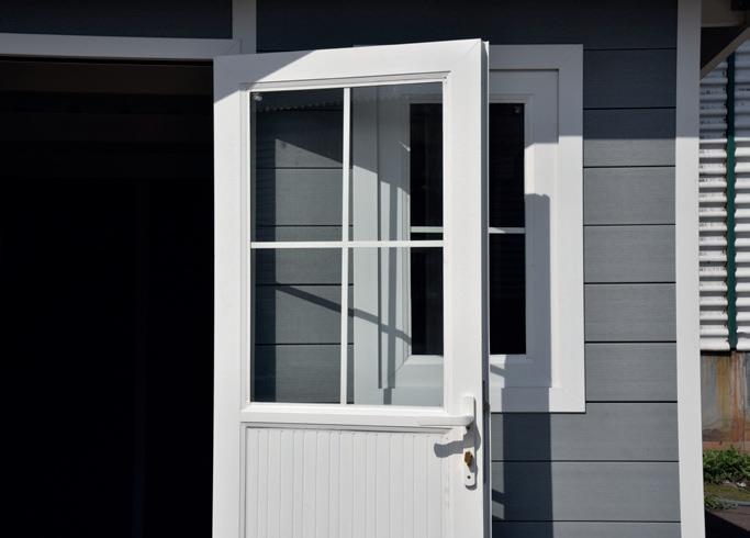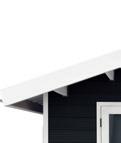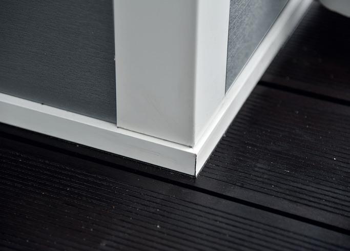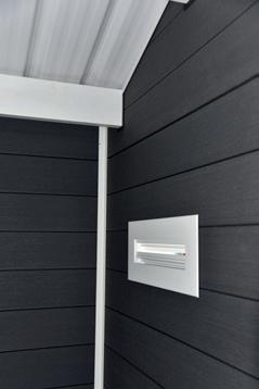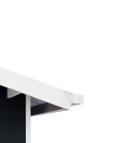 • En plus du composite (co-extrudé, composite de 2ème génération), d’autres matériaux de qualité sont utilisés : aluminium résistant et peint pour la structure, portes et fenêtres en aluminium avec double vitrage 5-6-5 mm et verre trempé. L’abri ne nécessite aucune couverture supplémentaire car la toiture en PVC + ASA est totalement étanche.