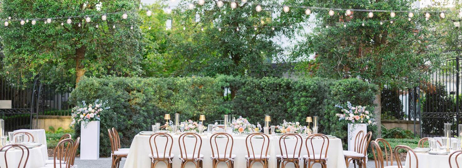 The Lenhardt Garden is a classical European-style garden with contemporary touches. The stunning allée, created by live oaks with lush plantings, surrounds the garden and provides an intimate space for an unforgettable evening.