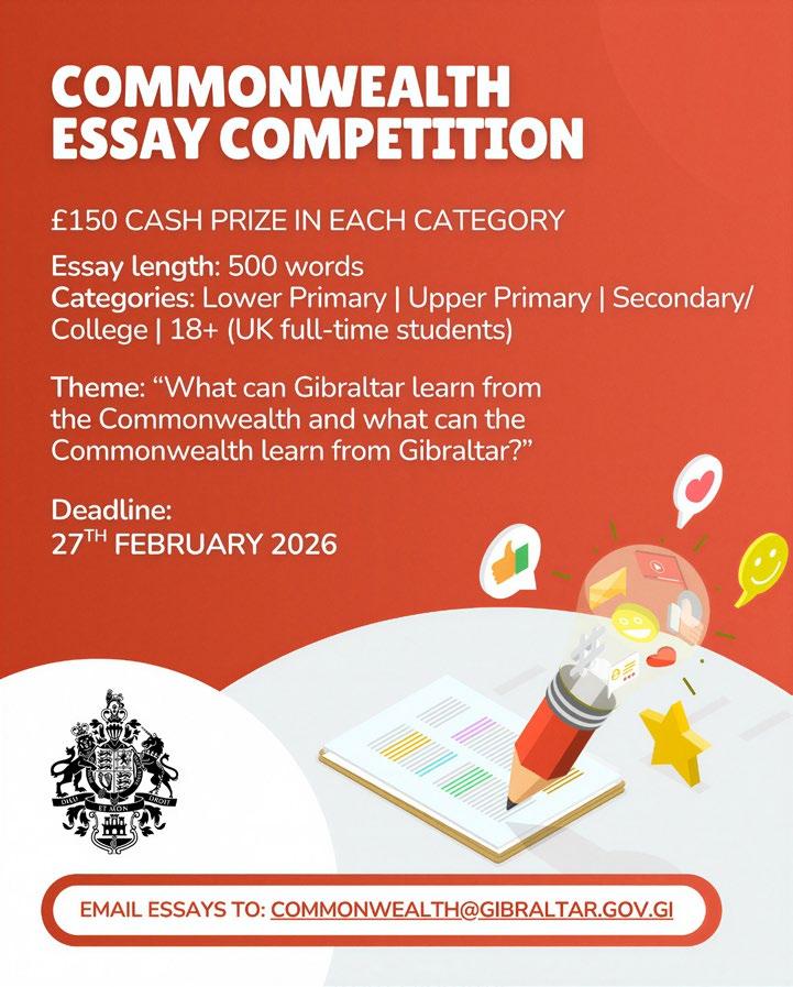 The Government is once again inviting entries from students who are attending school in Gibraltar, or further studies in the United Kingdom, for an essay competition on Gibraltar’s relationship with the Commonwealth.