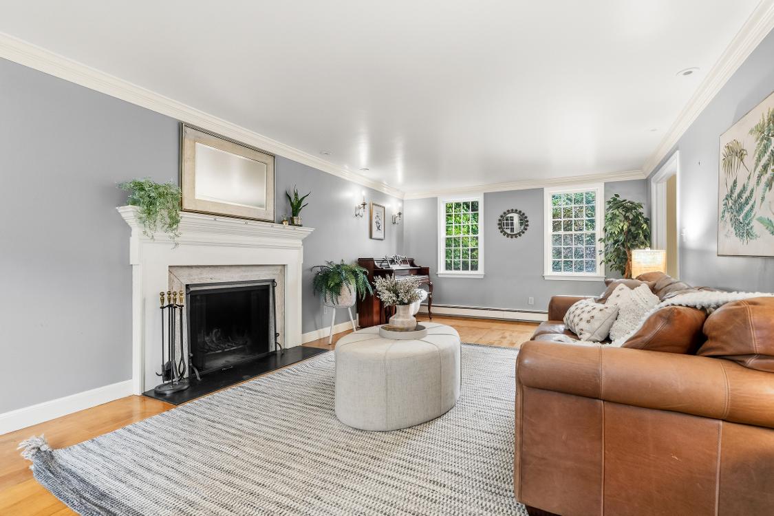 Set on a private, estate-like lot, this exceptional colonial blends timeless elegance with modern comfort The expansive kitchen is a chef?s dream, with custom cabinetry, double ovens and sinks, generous workspaces, and a cozy fireplace with built-ins opening to the sunroom and garden Enjoy easy flow to the formal dining room, living room with a fireplace, and the inviting den/office? perfect for entertaining or enjoying evenings at home Upstairs offers four spacious bedrooms, including a primary suite with private bathroom and dressing room, plus a guest bathroom with double sinks The lower level features a bright open playroom anchored by another fireplace. A welcoming farmer?s porch overlooks lush gardens, while a mudroom with laundry and bathroom, and an attached two-car garage, complete this beautifully maintained home offering space,privacy,and classic New England grace.