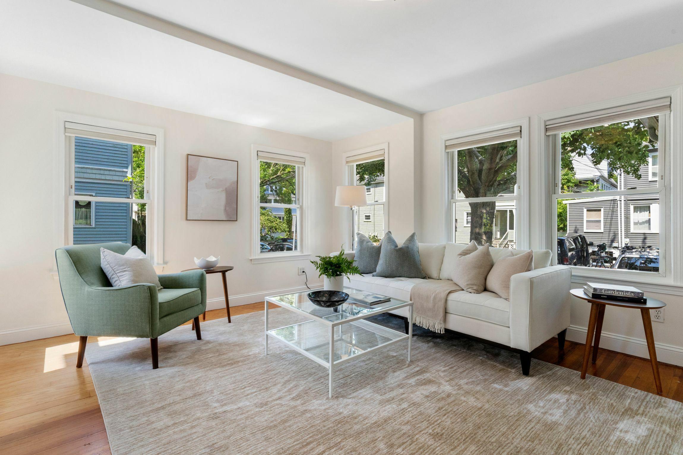 Located just blocks from Davis Square on a tree-lined side street is this charming cottage-style home clad in blue shingles Beyond the welcoming façade is a gracious, light-filled living room and a generously proportioned kitchen flanked by the dining and family rooms This open plan affords flexibility with room arrangements - an extra nook for dining or perhaps a place for the piano - and lovely views to the outside from nearly every vantage point. The line between the indoors and out is blurred on warm summer nights when friends and neighbors stop by to enjoy dinners on the patio Upstairs are three sunny bedrooms, a full bathroom and an office. The bright, unfinished basement houses the laundry and offers expansion potential Features include hardwood floors, central air and de-leaded 40 Corinthian with its Walk Score© of 93 means neighborhood gems like Dave?s Fresh Pasta, Spoke Wine Bar, the Hodgkins-Curtin Park and the Red and Green Line T stations are all within easy reach
