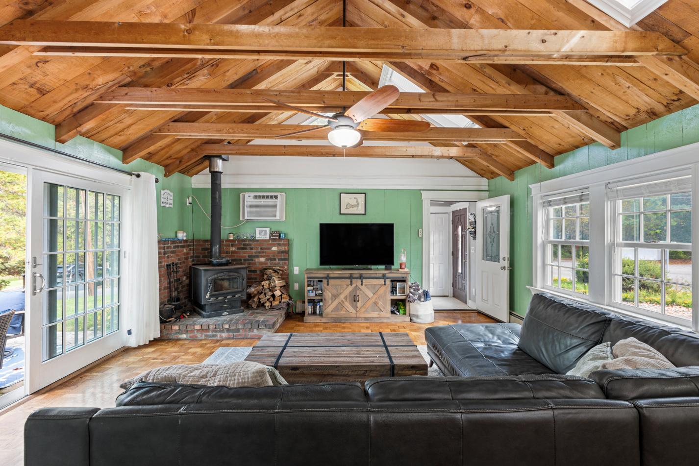 As you enter the large mudroom and walk into the cathedral-ceilinged, wood-beam great room, you are immediately struck by the spaciousness and openness of this home. The large scale of this room, with sliders to the patio and a .5+ acre lot, makes you feel at ease A wood stove with a large ceiling fan warms the space up The updated galley kitchen with stainless steel appliances opens into a dining area, additional living space, and a spacious office There is a first-floor ensuite bedroom with a full bath The second floor has two large bedrooms, a sweet nursery/office, and another full bath The lower level has walls and built ins in place and is waiting for a quick finish to add an additional 600+SF to the home! The detached garage has room for two cars and lots of storage The siting of the home and skylights allows the sun to stream in throughout the day Newly installed solar panels help the home run efficiently with $0 electric bills.Perfectly located between Cobb Corner and Sharon Center!