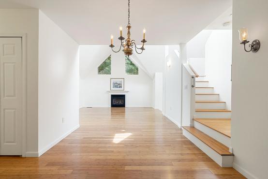 Move right into a nature lover's paradise while still being just minutes from major routes and thriving downtown Hudson! This freshly painted end unit with bamboo hardwood flooring and stunning architecture offers everything you need for today's modern living Open concept kitchen with center island, dining and living rooms Enter up to the primary wing boasting a generously sized bedroom, ensuite bath,and walk in closet The second level offers flexible loft space, bedroom number two as well as another full bath. Unfinished basement with high ceilings and full size windows provides an opportunity for future expansion by adding additional square footage Enjoy morning coffee or serene work from home views in the sunroom overlooking the lush wooded landscaping Washer/ Dryer on the main level for the utmost convenience Abundant closet and storage space Two car garage,mudroom, and half bath round out the home High ceilings,so much natural light you'll need your shades!