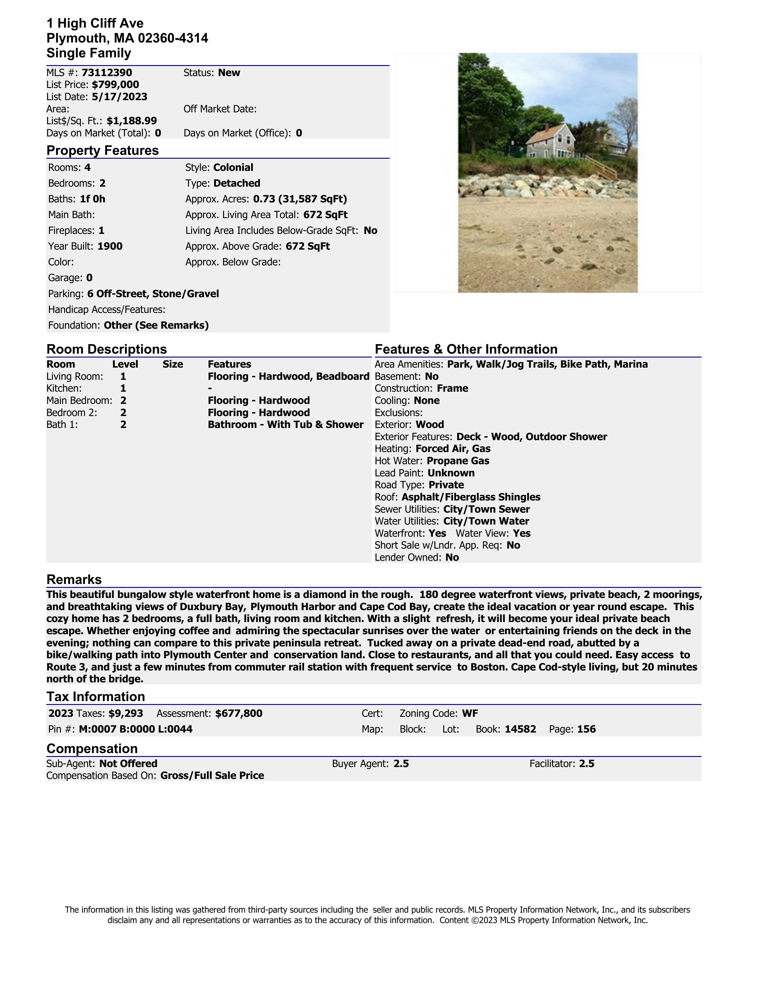 This beautiful bungalow-style waterfront home is a diamond in the rough. 180-degree waterfront views, private beach, two moorings, and breathtaking views of Duxbury Bay, Plymouth Harbor, and Cape Cod Bay, create the ideal vacation or year-round escape. This cozy home has two bedrooms, a full bath, a living room, and a kitchen. With a slight refresh, it will become your ideal private beach escape. Whether enjoying coffee and admiring the spectacular sunrises over the water or entertaining friends on the deck in the evening; nothing can compare to this private peninsula retreat Tucked away on a private dead-end road, abutted by a bike/walking path into Plymouth Center and conservation land Close to restaurants, and all that you could need Easy access to Route 3, and just a few minutes from a commuter rail station with frequent service to Boston Cape Cod-style living,but 20 minutes north of the bridge