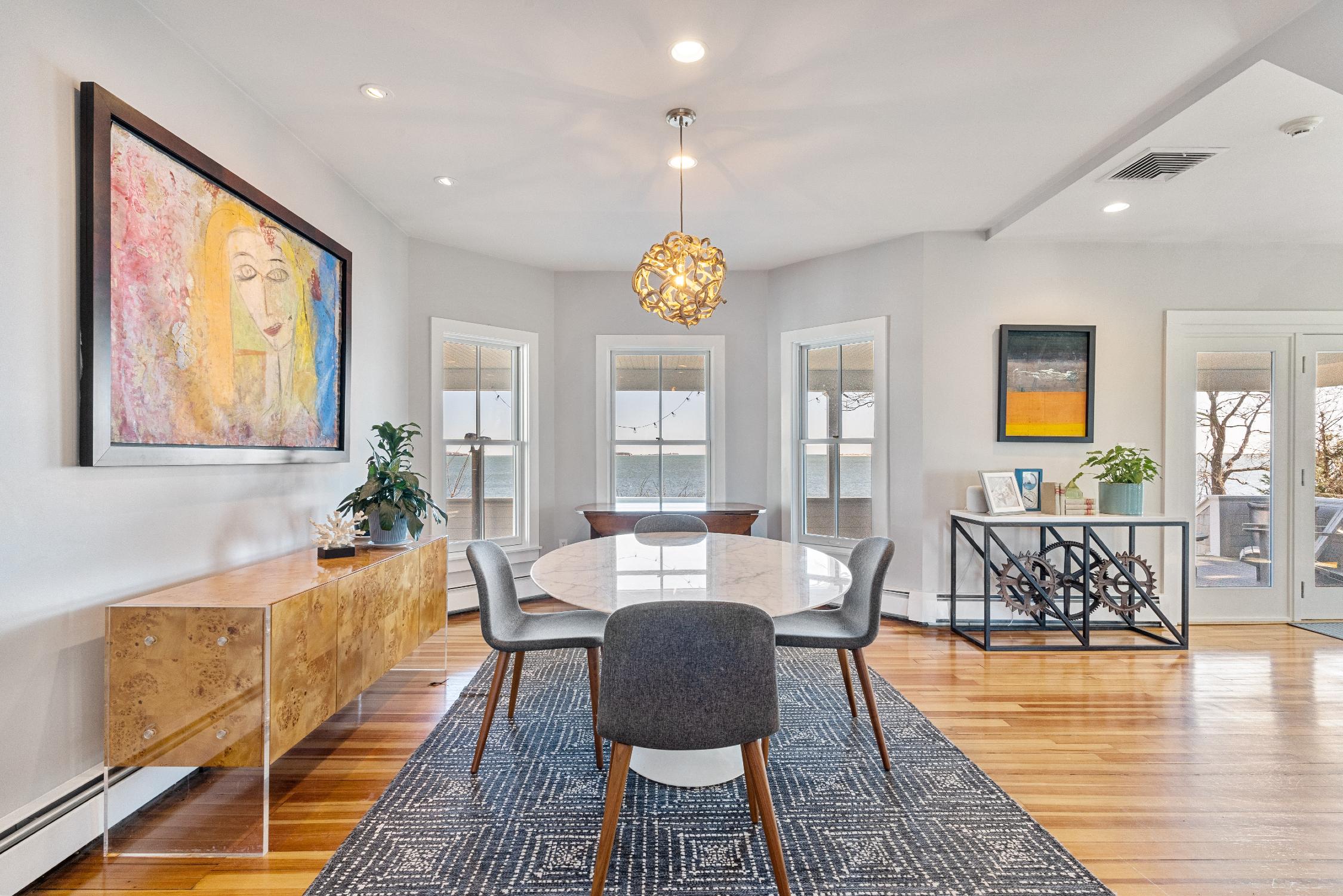 Historic home with private beach, mooring, and stunning views of Duxbury Bay, Plymouth Harbor, and Cape Cod Bay. Wake up every morning to the sun rising over the water illuminating lighthouses, islands, and blue water. There's nothing like enjoying a glass of wine or entertaining friends on the covered porch,patio,and beach deck,overlooking a beautifully landscaped yard that slopes down to the sea. The home has been architect-renovated with gorgeous details. There are five bedrooms to host your friends and family! Or turn one of the bedrooms into your home office -- and telecommute while watching the waves Tucked away on a private dead-end road, abutted by a bike path and conservation land Easy access to Route 3 and just a few minutes from commuter rail station with frequent service to Boston Cape Cod-style living,but 20 minutes north of the bridge