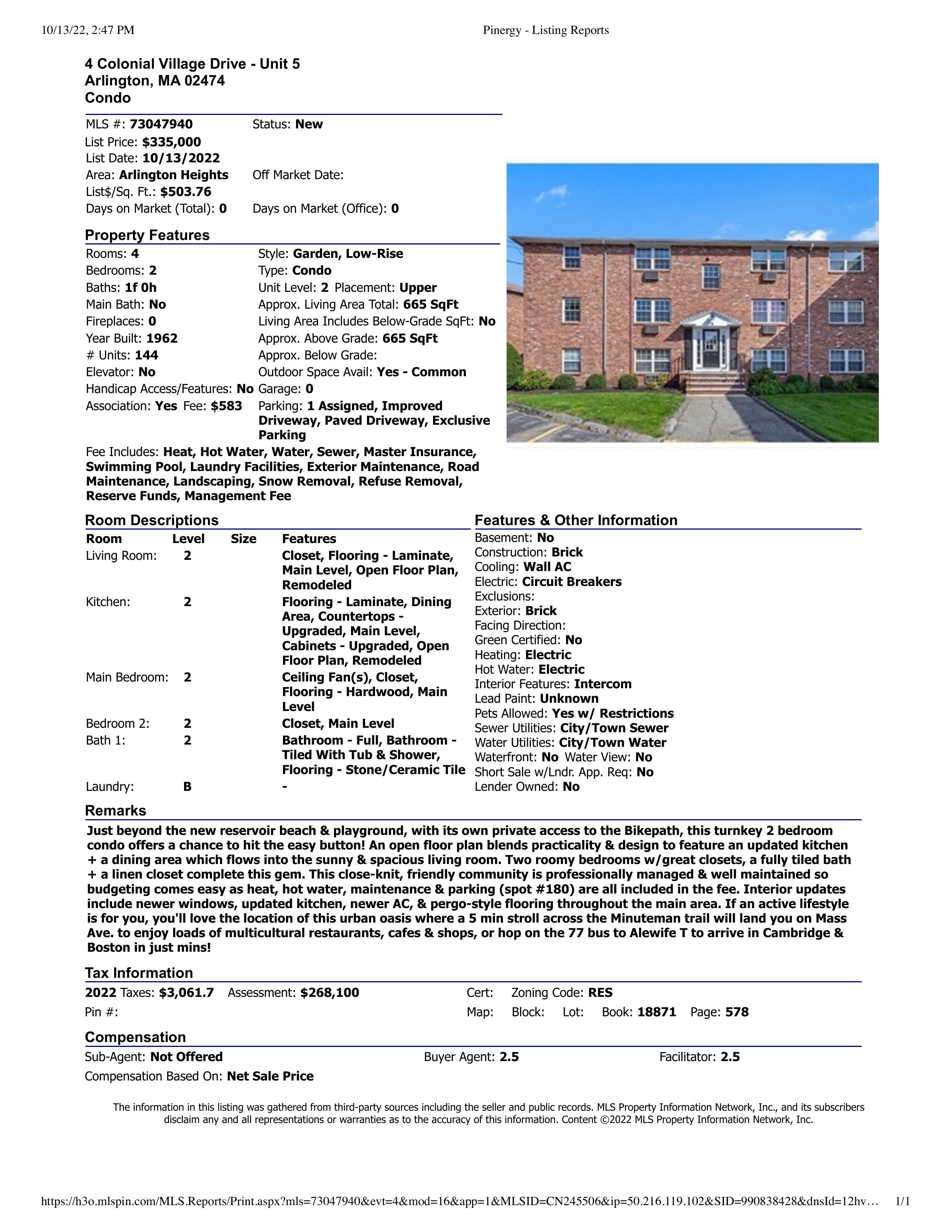 Just beyondthenewreservoir beachandplayground,withitsownprivateaccesstotheBikepath,thisturnkey twobedroomcondooffersachancetohit theeasybutton! Anopenfloor planblendspracticalityanddesign to feature an updated kitchen plus a dining area which flows into the sunny and spacious living room Two roomy bedrooms with great closets, afully tiled bath plus alinen closet completethis gem. This close-knit, friendly community is professionally managed and well maintained so budgeting comes easy as heat, hot water, maintenance and parking (spot #180) are all included in the fee Interior updates include newer windows, updated kitchen, newer air conditioning, and pergo-style flooring throughout the main area. If an active lifestyle is for you, you'll love the location of this urban oasis where a five min stroll across the Minutemantrail will landyouonMassAve toenjoyloadsof multicultural restaurants,cafesandshops,or hop onthe77bustoAlewifeTtoarriveinCambridgeandBostoninjust minutes!