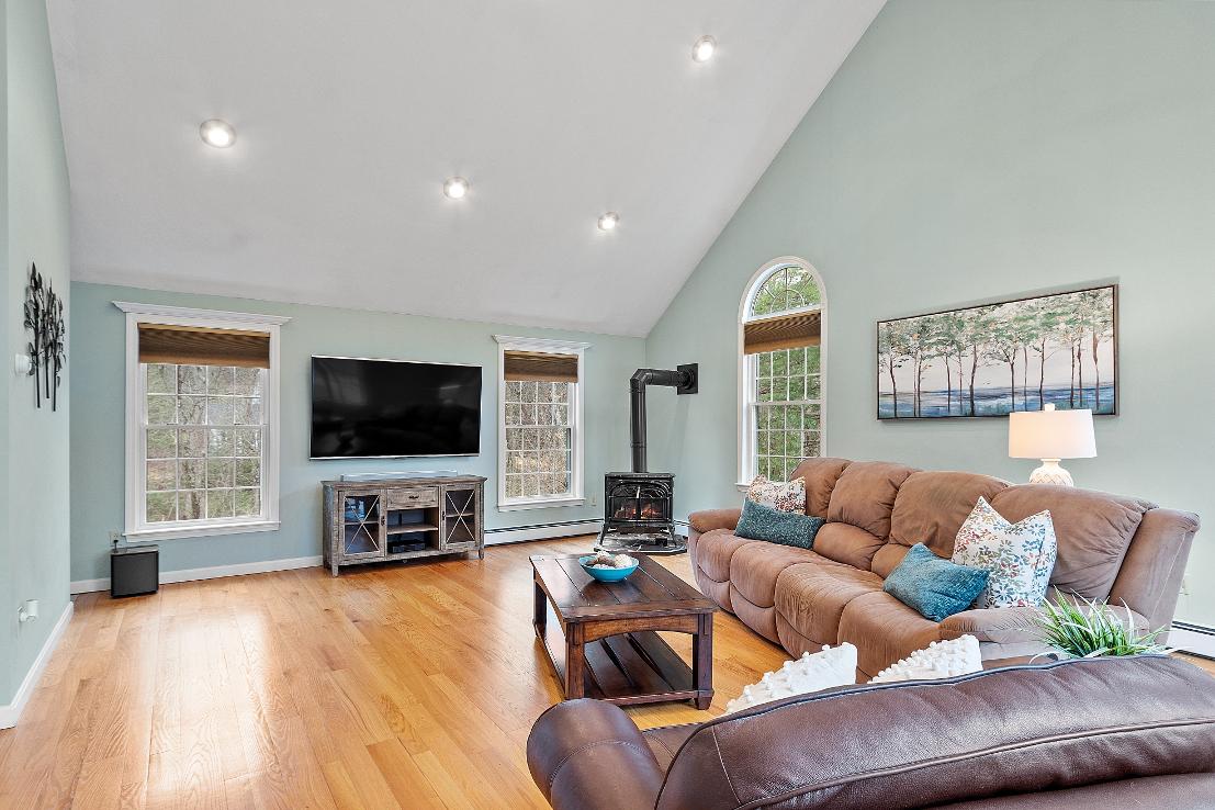 The most tranquil setting in one of Mendon's prominent neighborhoods The center of the home is its inviting kitchen loaded with custom cabinets, double wall ovens, a center cooktop island, and a large peninsula to gather around. The extra-large eat in breakfast area brings a calming warmth with the wood fireplace This also leads outside to the oversized two-tier deck, overlooking the natural peace and beauty in your backyard The open floor plan is perfect for hosting those large family gatherings, with an inviting great room and a beautiful gas stove Finish off the first floor with a formal living room adorned by french doors, a dining room, half bath, and laundry Make your way to the second floor to find a primary suite with hardwoods, a walk-in closet, and full bath. Three more generous sized bedrooms and another full bath will complete the top floor The finished walk-out basement is ready to use as a game/playroom with a separate area for the all important home office space Workshop and additional large storage areas in the unfinished section that also has a separate double door entrance to the private backyard Manicured grounds with patio, irrigation system, and invisible dog fence for the pups. Surrounded by sheer beauty it's easy to see why this home has only had one owner.
