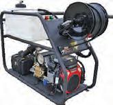 Models range from light, economical JM-2900 through precisely balanced JM-3000 with electric start and generous 300 ft. capacity hose reel. The JM-3080 tops the line with a 12 gal buffer tank and 8 gpm flow rate – the industry’s highest without requiring a trailer.