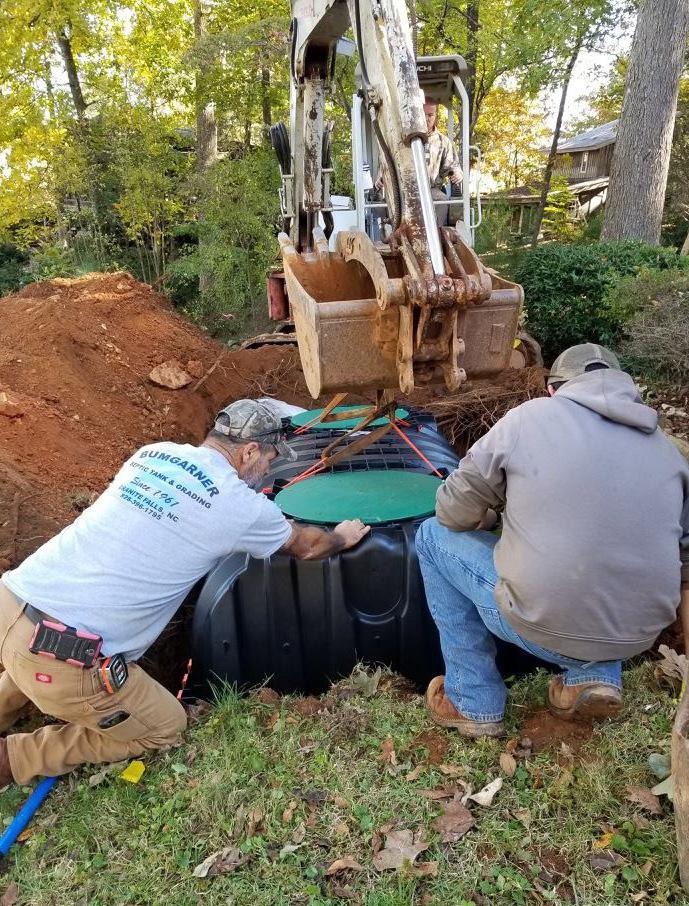 Many locations have to be leveled, graded, and prepped for septic installation. A lot of happy Bumgarner Septic customers would get their tanks