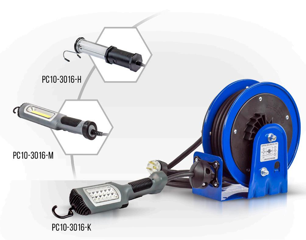 Whether you are looking for the compact LED light feature (-M), the LED light with the additional power source (-K), or the industrial-duty, UL Listed LED light (-H), these reels have the perfect features to complement a variety of applications.