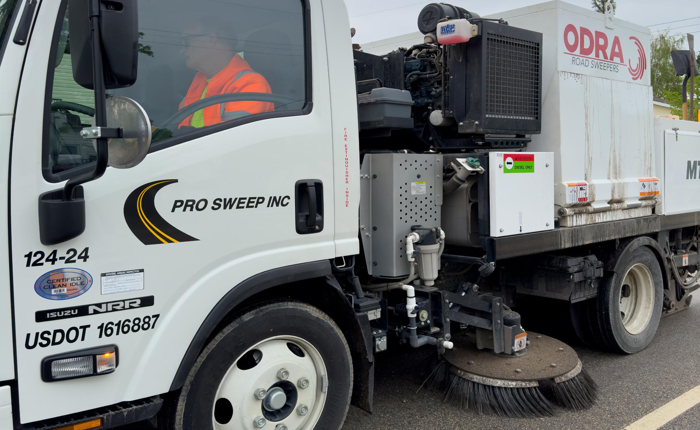 Today, Pro Sweep has 10 sweeper trucks. Over recent years, Bruce has switched to buying all ODRA sweeper trucks, a brand he finds versatile enough to tackle parking lots and construction