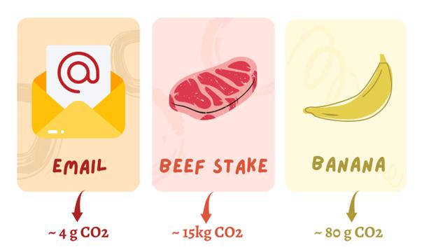 Anglies dioksido pėdsaką palieka jūsų išmanusis telefonas, suvalgytas bananas ar kepsnys ir išsiųstas el. laiškas. Pavyzdžiui, vidutinis banano CO2 pėdsakas yra apie 80 g, elektroninio laiško – 4 g, o jautienos kepsnio – iki 15 kg.