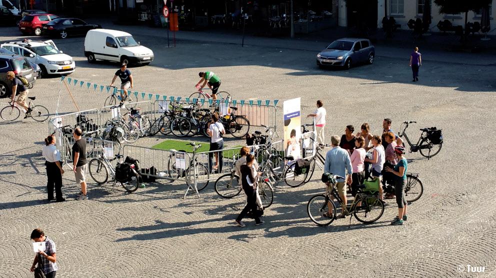 leurenFestival des Couleurs over twee dagen, met een tweetalige fietstocht langsheen de taalgrens als ouverture. Dat de fiets centraal staat in onze werking kwam ook mooi tot uiting met de eerste ‘pop-up’ fietsenstalling op het centrale plein van de Markt.