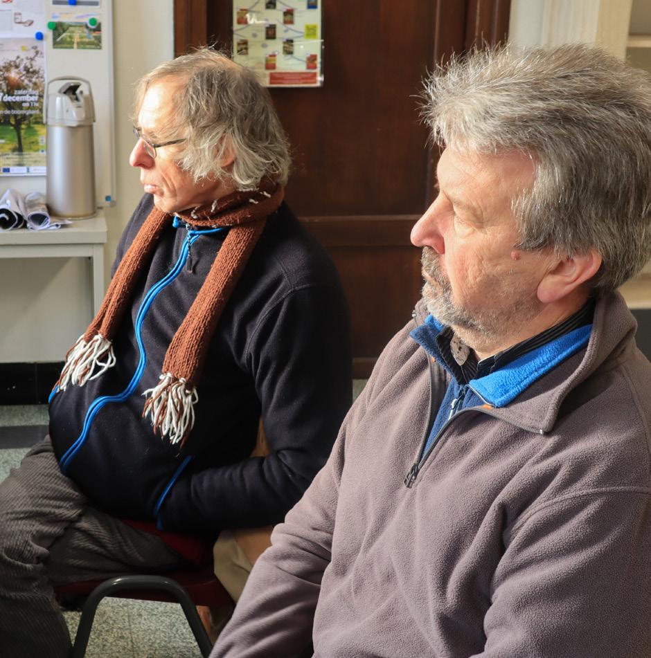 Genodigden, omwonenden en sympathisanten verzamelden graag in de witgevroren boomgaard. Coördinator van de stadsboerderij, Leen Van de Weghe, opende de activiteit met een stralende glimlach. Ze had ook beeldmateriaal bij om de historiek van de voormalige kloostertuin netjes te kaderen in het project. Het publiek luisterde aandachtig. Als voorzitter van TraGer vzw mocht ik het woord nemen en plaatste ik het project in de huidige maatschappelijke context. Ik haalde herinneringen op over de prille start van het burgerinitiatief.