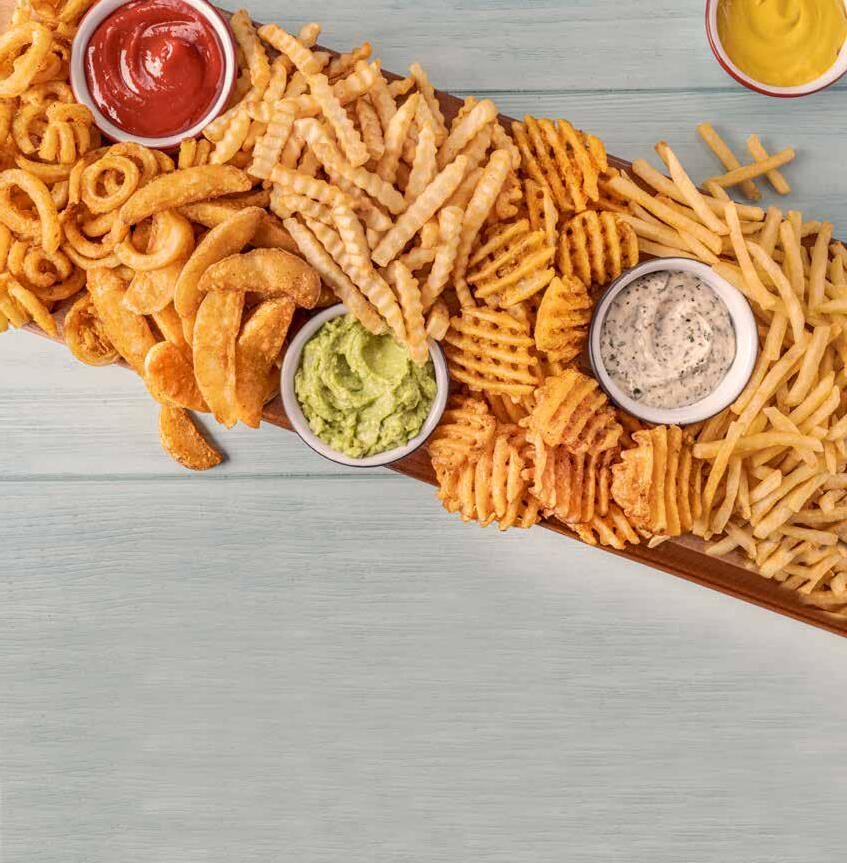 2 tazas de papas congeladas (Corte Recto, Reja, Curly, Gajo).