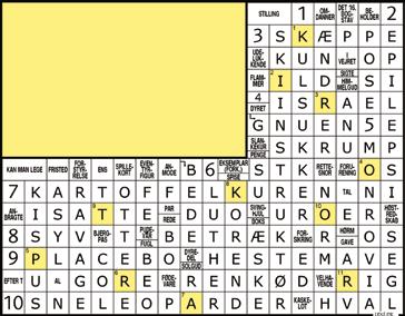 De gule felter danner et løsningsord. Send din løsning, navn, adresse, mobilnummer og e-mail senest den 18. oktober 2025 til x-ord@gigtforeningen.dk eller på et åbent postkort til Gigtforeningen, Tobaksvejen 2A, 2860 Søborg, mrk. ’x-ord’. Du kan kun deltage én gang pr. x-ord.