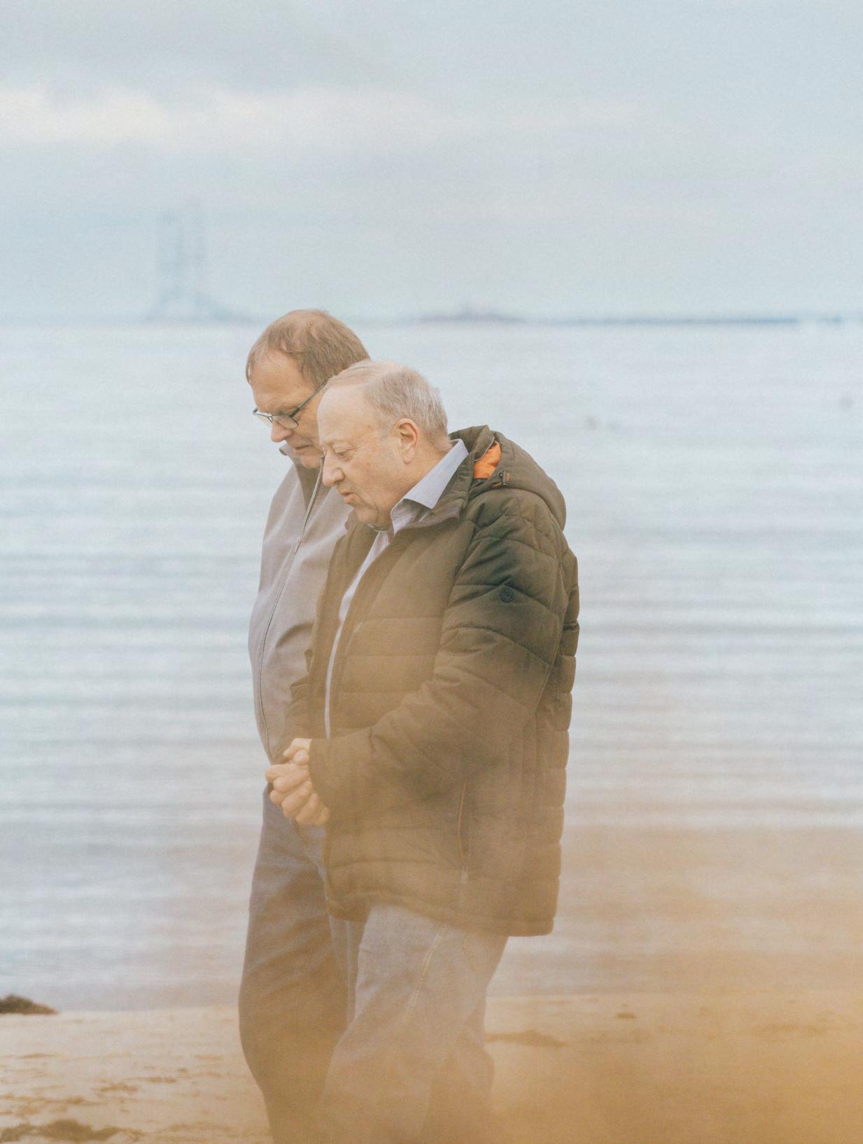 I vandkanten talte de to mænd om, hvordan man bryder de mønstre, de begge har med i bagagen, så de ikke bare flygter fra deres ægtefællers sygdom. De vil gerne være der for deres hustruer, men har også begge to brug for pauser fra sygdommen.