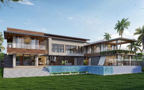 This project features a Balinese-inspired architecture that combines tropical resort elements. We utilized the large space to create a spacious design. we enhanced the design with a large roof , stone tile, stone wall covering and tropical landscape.