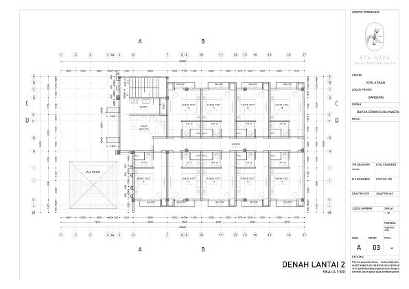 This project is situated in a bustling area of Bandung and consists of 31 units ‘kost’ room in a five-storey building with a basement. The basement can accommodate 8 cars and 13 motorcycles, while the facade features a classic design that is visually appealing and timeless. The client’s main requirements were to prevent rainwater from entering the building and to ensure natural ventilation. To achieve this, we installed canopies over every window and used roster bricks to allow air circulation throughout the building. Every bedroom in this building has a balcony, which adds value and appeal for the owners.