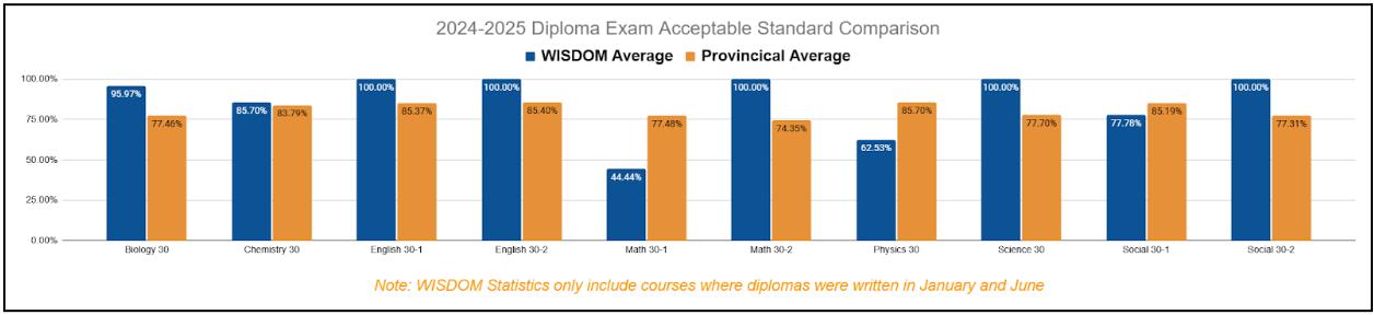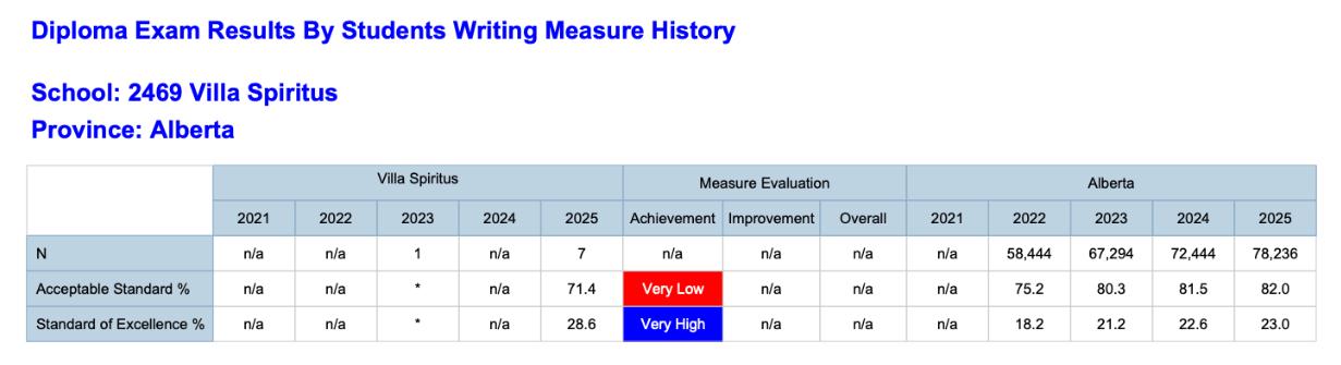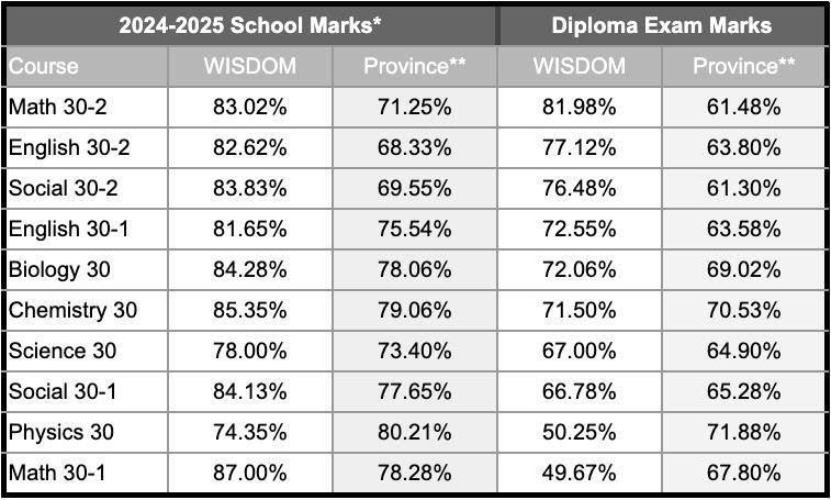 Due to small cohort sizes, Alberta Education suppressed PAT and Diploma exam results for campus programmes. As recommended by the Funding Manual, the Institute uses local measures including literacy screening, CTBS , CLT, and teacher evaluations to demonstrate student progress.