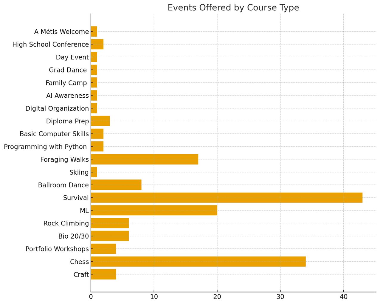 • WISDOM offered a wide selection of courses each term, with over 60 course sections in the Fall term and just under 50 in the Spring term.