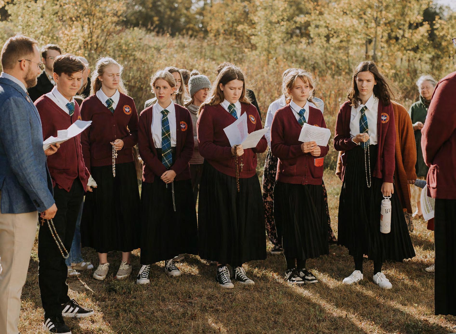 This year, students demonstrated an eagerness to attend and learn in both their grades and demeanour. Student exams have varied to include standard written exams, multiple choice, and oral exams. Several younger students have had the use of a scribe to assist them in completing all major assessments. A key event was the opportunity to sing at the annual Lessons & Carols service, marking the First Sunday of Advent and showcasing the choral programme. Students also sang during the pilgrimage Mass at the Our Lady of the Rockies Shrine in Canmore. A milestone last year was the year end presentation of vignettes from Shakespeare’s Julius Caesar