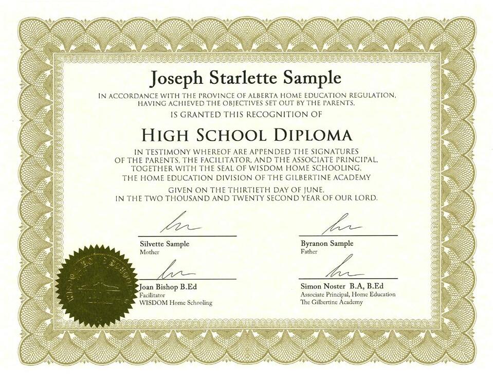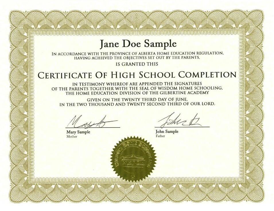 WISDOM students who complete the learning outcomes, as set forth by their parents, can receive a WISDOM Diploma or Certificate of High School Completion, and may request a Parent Verified Transcript of courses and marks.