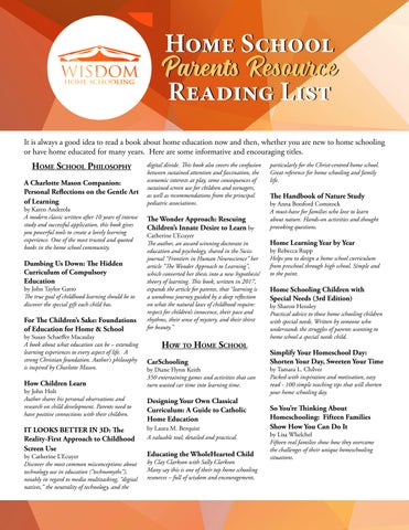 Home School Parents Resource Reading List Home School Parents Resource Reading List