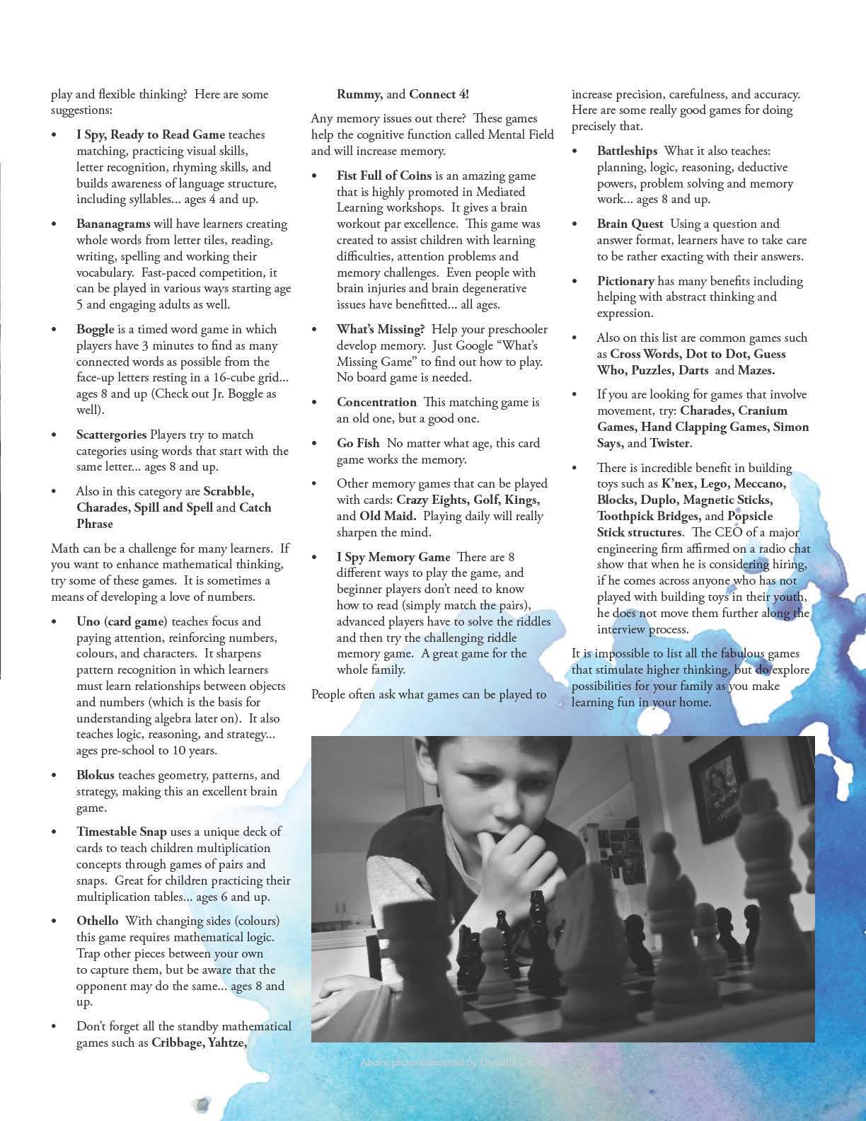 Memory “practice” with games is an excellent way to flex and strengthen your memory. Board games where the major component is utilization of your memory are classic and more relevant today than ever. Board games provide the social interaction with others that is lacking with today’s computer games which focus on memory improvement. But don’t discount those computer games just yet; research has shown they do enhance memory function. The key is balance and variety.