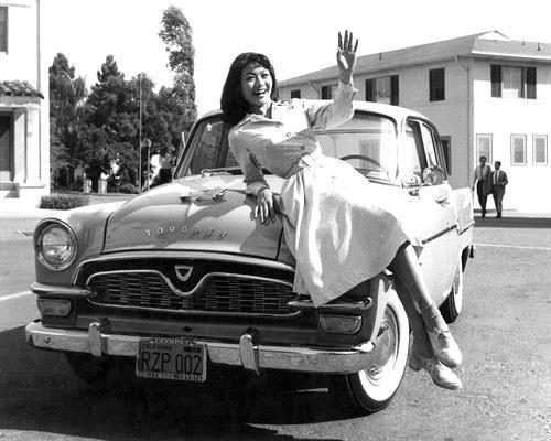 Hollywood screen-star Nobu McCarthy, called the world's most beautiful Japanese actress, appeared at the Holt Motors in Van Nuys, at a gala honoring the new Toyopet Crown.