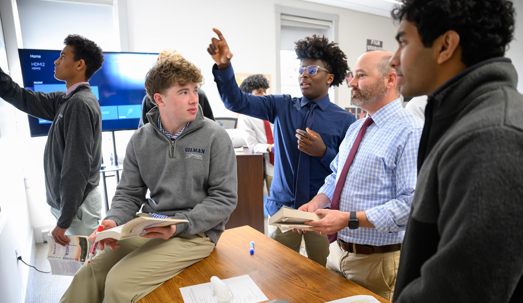 Today at Gilman, our boys are challenged intellectually like never before. Through our myriad courses, the students are encouraged to learn about various subjects — those like Latin and Greek — that have been around since 1897 and others, like Medical Problem Solving and Baseball and Statistics, that have found their way into the curriculum only in the last few years. In addition, Gilman boys can take classes that build robots and 3D figures, discuss the causes and repercussions of World War II, or immerse themselves in the works of Jesmyn Ward. No matter the course or the material, we aspire to challenge the boys to think, communicate, collaborate, and create. Our curriculum reflects the ever-changing political and social landscape that provides the boys with exposure to different voices and points of view.
