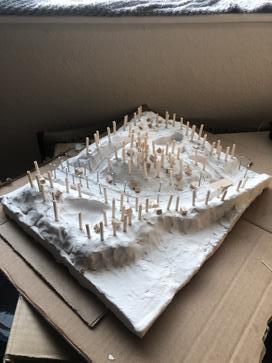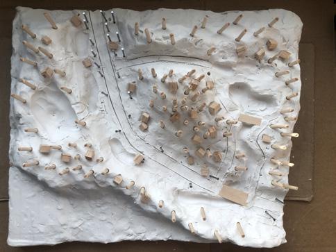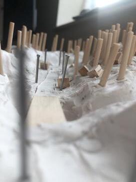 To begin the process, I made a collage combining the empty site and components of glacial landsacpes. From there, I created a working clay model to assist in the development of the site. I had created a mission statement as well to explain the guiding principles