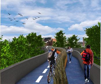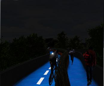 For this project, I wanted to find a better way for pedestrians and bikers to get onto campus while avoiding traffic along University Ave. I took inspiration from the Cykelslagen in Denmark to create an elevated bike highway through the tree canopy along the BNSF railyard. It uses phosphor pavement that “charges” during the day to illuminate the path at night. The path also provides a much needed connection point from the west and from downtown.