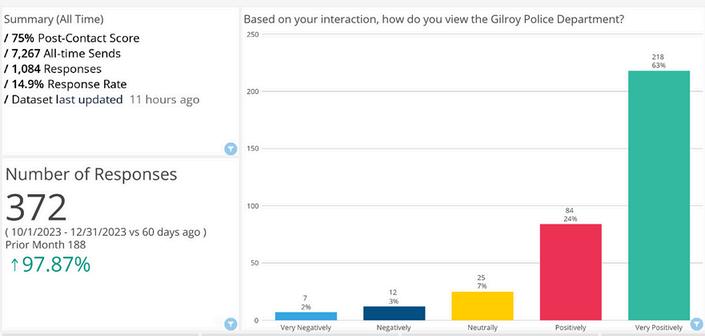 On Oct. 1, 2023 and in partnership with Axon, the Gilroy Police Department launched My90, a community survey that offers anonymous feedback options to the community This endeavor was identified as part of the department’s work plan to increase our transparency and community trust-building efforts
