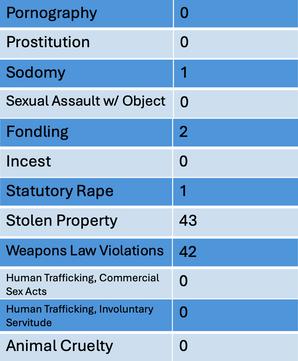 In 2022, we fully transitioned from the Uniform Crime Reporting (UCR) system to the National Incident-Based Reporting System (NIBRS). The transition allowed for more detailed characteristics to be reported to the FBI regarding criminal incidents.