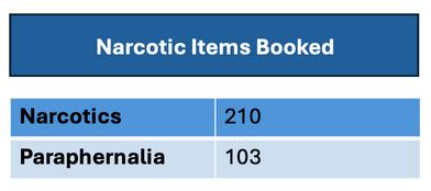 Our Anti-Crime Team was equally busy, not just with their own investigations but also with assisting various patrol events and outside agencies on a variety of cases. Several pounds of narcotics were seized over the course of the year, as was several thousand dollars.