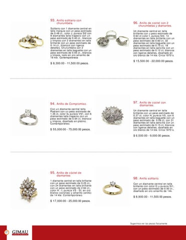 Solitario con 1 diamante central en talla marquis con un peso estimado de 0.48 ct., color J, pureza SI2 con 8 diamantes talla trapecio con un peso estimado de 0.40 ct., blancos y limpios con 2 diamantes en talla brillante con un peso estimado de 0.14 ct., blancos con ligeros detalles. Churumbela con 2 diamantes en talla baguette con un peso estimado de 0.05 ct., blancos y limpos, todo en oro amarillo de 18 kte. Contemporáneos